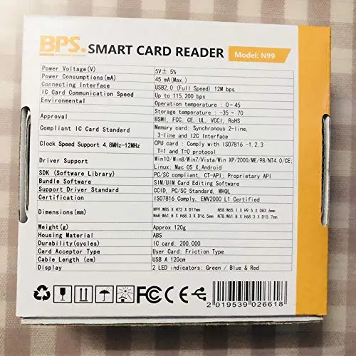 Certification: ISO7816-1,2,3 PC/SC CE ROHS USB-CCID WHQL EMV