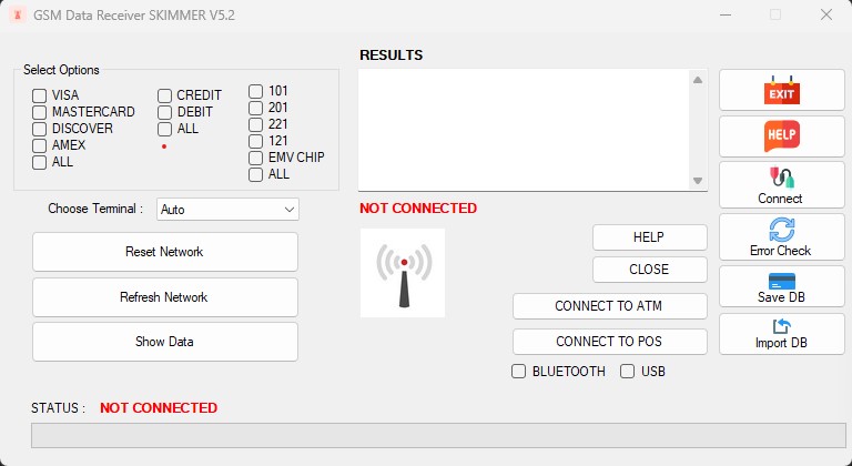 We are pleased to offer the GSM Data Receiver SKIMMER v5.2 software, available for purchase from our trusted source. This universal software is compatible with a range of devices, including RC832, SIM800C, and GSM Data Receiver or later versions. With this software, you can easily connect your Windows laptop to the GSM Data Receiver using either Bluetooth or USB.